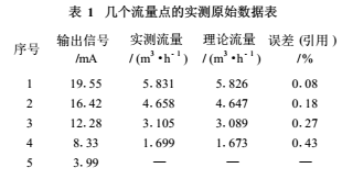 流量計廠家在出廠檢驗**中都把實測的幾個流量點的原始數據以表1方式給出,從中可見實測的引用誤差都遠遠小于*大允許誤差。表1的EMF量程為6m³/h(100L/min),輸出電流為4~20mA;且在滿量程值50%以上的測量點精度較,而在滿量程值1/3以下測量點精度低。