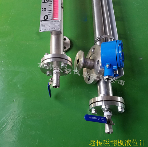 在管體的另一側(cè)可按用戶需要加裝電遠(yuǎn)傳變送器,將液位高度轉(zhuǎn)換成標(biāo)準(zhǔn)電流信號輸出,以供液位信號輸出,以供液位信號遠(yuǎn)傳至二次儀表進(jìn)行指示控制與檢測。