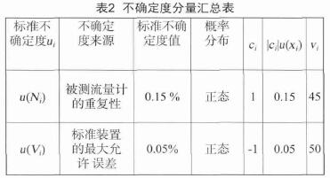 由于廠家給出該氣體流量標(biāo)準(zhǔn)裝置的擴(kuò)展不確定度U=0.1%;k=2。