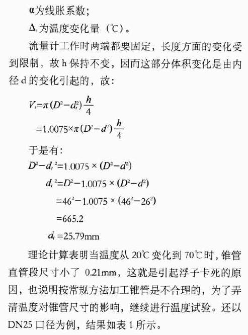 將上述結(jié)論加以推廣,應(yīng)用于耐腐型浮子流量計(jì)的所有口徑,結(jié)果是令人滿意的,產(chǎn)品質(zhì)量完全滿足用戶的現(xiàn)場(chǎng)條件,產(chǎn)品性能優(yōu)良。所以說“合理的工藝過程是產(chǎn)品性能的保證”。