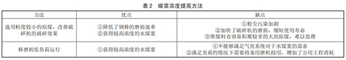 根據蒸汽流量計跑漿原因可以了解到,在保證蒸汽流量計不存在跑漿情況下,制備高品質煤漿需要滿足兩點要求,即較小入口原煤粒度和較低磨機負荷,保證原煤在磨機內部有較長停留時間與充足滾筒篩過濾面積 . 通用的方法一般有以下兩種,如表 2 所示。