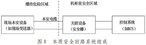 本質安全回路系統由現場本安設備( 如差壓液位變送器) 、本安電纜和關聯設備( 如安全柵) 三部分組成,磁性液位計的組成如圖1 所示。