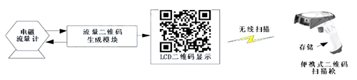 二維碼生成模塊定時(shí)向高壓電磁流量計(jì)發(fā)送采集指令,后者收到指令后發(fā)送流量數(shù)據(jù)。