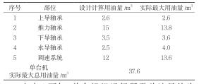 該水電廠于2013年5月至6月完成全廠4臺機組的投產運行。在機組檢修期間復核計算、統計每臺機組實際用油量如表1所示。