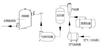 以原料萘為例。萘由原料儲罐經(jīng)液萘泵加壓后進(jìn)入萘蒸發(fā)器,液萘在萘蒸發(fā)器內(nèi)由中壓蒸汽加熱汽化分離,經(jīng)流量調(diào)節(jié)閥、流量計和氣萘切斷閥后進(jìn)入汽化器;空氣經(jīng)風(fēng)機加壓后,經(jīng)空氣加熱器加熱后進(jìn)入汽化器,氣萘和空氣在汽化器內(nèi)混合均勻后進(jìn)入氧化反應(yīng)器上部,經(jīng)催化床層發(fā)生氧化反應(yīng)生成苯酐和少量的副產(chǎn)物(以順酐、苯甲酸、萘醌、和鄰苯二甲酰亞胺為主);反應(yīng)氣體經(jīng)液體渦街流量計冷卻后再進(jìn)入切換冷凝器進(jìn)行凝華捕集,少量未被捕集的有機物和不凝氣體經(jīng)尾氣管路進(jìn)入蓄熱焚燒裝置焚燒處理,焚燒后的尾氣達(dá)標(biāo)排放。