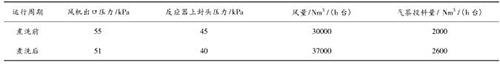 液體渦街流量計煮洗吹掃后,裝置運行期間無燃爆事故,且裝置運行的風(fēng)量明顯提高,系統(tǒng)阻力明顯降低,投料量增加。現(xiàn)將煮洗前后的運行數(shù)據(jù)對比如下:
