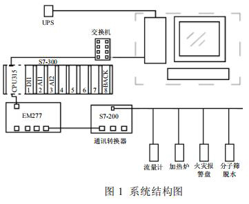 集氣站是收集氣井所生產天然氣的站場,在集氣站內對天然氣進行節(jié)流降壓、加熱、調壓計量等各種工藝預處理,設備眾多且分散。為方便進行檢測和操作,必須進行統(tǒng)一的數(shù)據(jù)采集,在監(jiān)控臺進行數(shù)據(jù)的管理。集氣站設備主要包括加熱爐、衛(wèi)生型渦輪流量計、分子篩、火災報警盤,以及供電設備 UPS 等,這些不同廠家的設備基本都支持Modbus 協(xié)議,通過 Modbus 通訊可以將這些數(shù)據(jù)采集。為了有效降低成本,設計了如圖 1 所示的系統(tǒng)。系統(tǒng)采用西門子 S7-300 控制器,通過以太網連接上位機監(jiān)控軟件,再通過 MP277 連接S7-200 的方式。S7-200 控制器自帶 RS485 接口,能夠進行 Modbus 通訊,采集現(xiàn)場各種設備數(shù)據(jù)。*后通過以太網通訊將設備數(shù)據(jù)上傳至監(jiān)控軟件,方便操作人員進行監(jiān)控,該方案簡單有效,能夠實現(xiàn)集氣站內設備的狀態(tài)監(jiān)控,數(shù)據(jù)處理,有效的進行天然氣的生產工作。