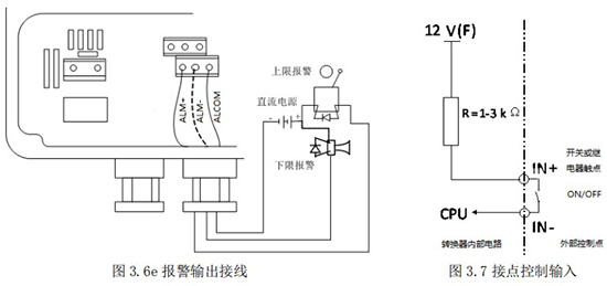 頻率(脈沖)、上下限報警、流向標(biāo)示等輸出均為集電極開路的電平輸出信號。