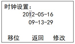 設置界面 17:時鐘設置,校準當前運行的日期和時間,此參數出廠時已校準,時鐘設置影響數據計算,在運行前務必設置成當前日期,如錯誤將造成記錄保存混亂。