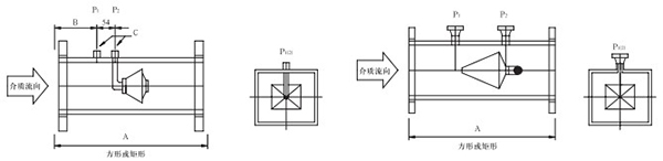 節(jié)流元件為相似形方錐,為測量方形(正方和矩形)管道內(nèi)介質(zhì)的流量而專業(yè)設(shè)計。
