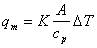 消耗功率p和溫度差δt如式3所示比列關(guān)系,式中b, c, k均為常數(shù),k在?~?之間。從式2便可算出質(zhì)量流速,乘上點流速于管道平均流速間系數(shù)和流通面積的質(zhì)量流量qm,再將式3變換成式4。