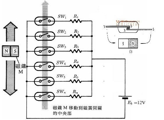 磁變送器(干簧管變送器):與磁開關(guān)的原理相似,它是捆綁在浮筒外面。當(dāng)浮筒里面的浮子隨著液位變化時(shí),上下移動,浮子中的磁鋼所在的位置將改變干簧管中磁開關(guān)的狀態(tài)(閉合),只有在磁鋼作用范圍內(nèi)的干簧管閉合,其它都處于開路狀態(tài),從而改變回路的電阻值,或者說是改變了輸出回路的阻值。浮子的位置相當(dāng)與電位器的滑動點(diǎn),隨著浮子的位置變化,引起上下電阻的抽頭(上下電阻值)變化,液位越低,電阻值越大,越高電阻越小(出線在頂部)。由于回路是恒(定電)流,再通過電流/電壓轉(zhuǎn)換,進(jìn)而可以轉(zhuǎn)化為4~20mA/HART 等信號。液位變化,液位旁邊的磁開關(guān)閉合,電阻值變化,輸出電壓隨之變化。