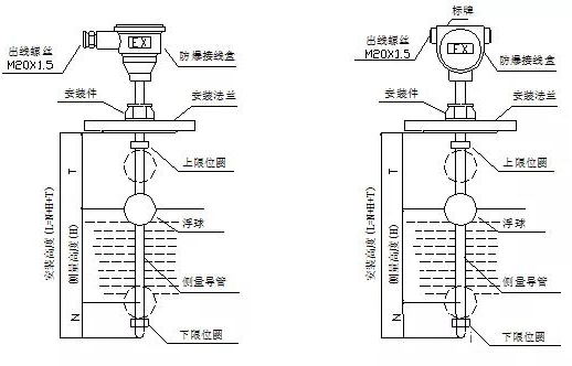 頂裝式浮球液位計是一種工業生產中普遍在使用的液位測量儀表,其安裝方便靈活,具有良好的適應性,法蘭式和支架式安裝都可進行,可適應不同的工況條件。浮球液位計是以磁浮球為測量元件,通過磁耦合作用,致使傳感器內電阻產生線性變化,再通過智能轉換器將電阻變化轉換成4~20mA標準電流信號傳輸,特殊訂制的型號亦可以疊加HART協議的信號,*終能液晶方式顯示。據變送器與顯示器的不同型號,可以現場顯示液位的百分比、4~20mA電流及液位值,此遠傳信號可以遠傳供給控制室,以實現液位的自動檢測、控制和記錄。頂裝式浮球液位計適用于石油、化工、電力、輕工及醫藥等行業污水處理及各類常壓和承壓容器內介質液位的測量,是測量各類貯罐、地下貯槽的*為理想的液位計產品。