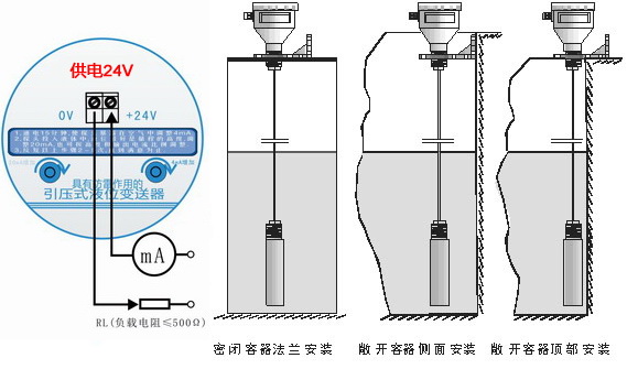 一體式投入式液位計若是安裝在靜止的深井、水池中時,一般把內徑①45mm 左右的鋼管(不同高度打若干小孔,以便水通暢進入管內)固定于水中,然后將靜壓投入式液位計放入鋼管中就可以使用。不過要記得液位計的安裝方向要是垂直的,安裝位置需要遠離液體出入口及攪拌器。