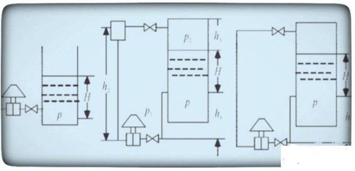 上圖中是靜壓差液位計的三類零點遷移,從左到右分別是無遷移、負遷移、正遷移。