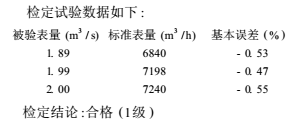 現(xiàn)以其中1臺開封儀表廠生產(chǎn)的口徑1600mm的0.5級電磁流量計為例,分析超聲波流量計的檢定方法及其優(yōu)缺點(diǎn)。