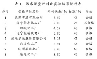 撫順市環保局在重點污染源單位中安裝了44臺化工污水流量計選型。其中,運轉的有39臺,運行比較正常的有14臺,通過對其中8臺所做對比實驗結果表明合格的有7臺,合格率為87.5%。
